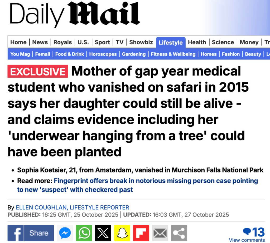 De online versie van de Engels krant de Daily Mail heeft dit weekend een uitgebreid artikel gepubliceerd over Sophia’s mysterieuze verdwijning, geschreven door Ellen Coughlan.