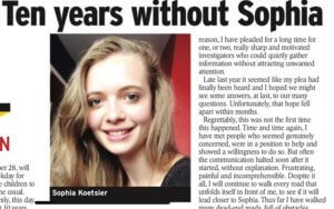 This weekend the online version of the English newspaper the Daily Mail published a lengthy article about Sophia’s mysterious disappearance, written by Ellen Coughlan. In